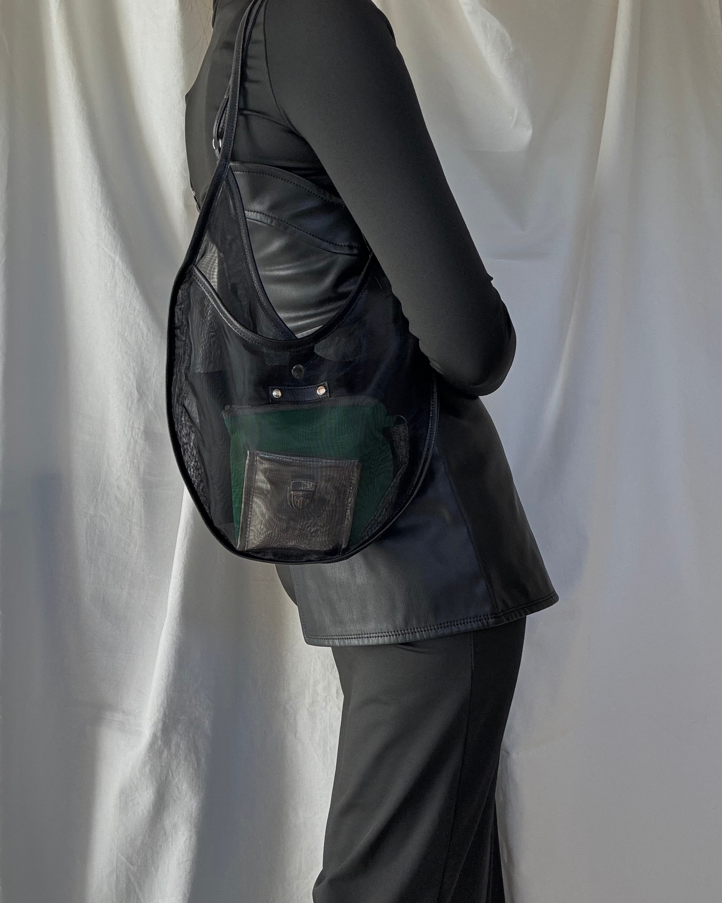 光沢感のあるオーガンジー素材を使用した、雫のようなラインの柔らかでエレガントなドロップバッグ。