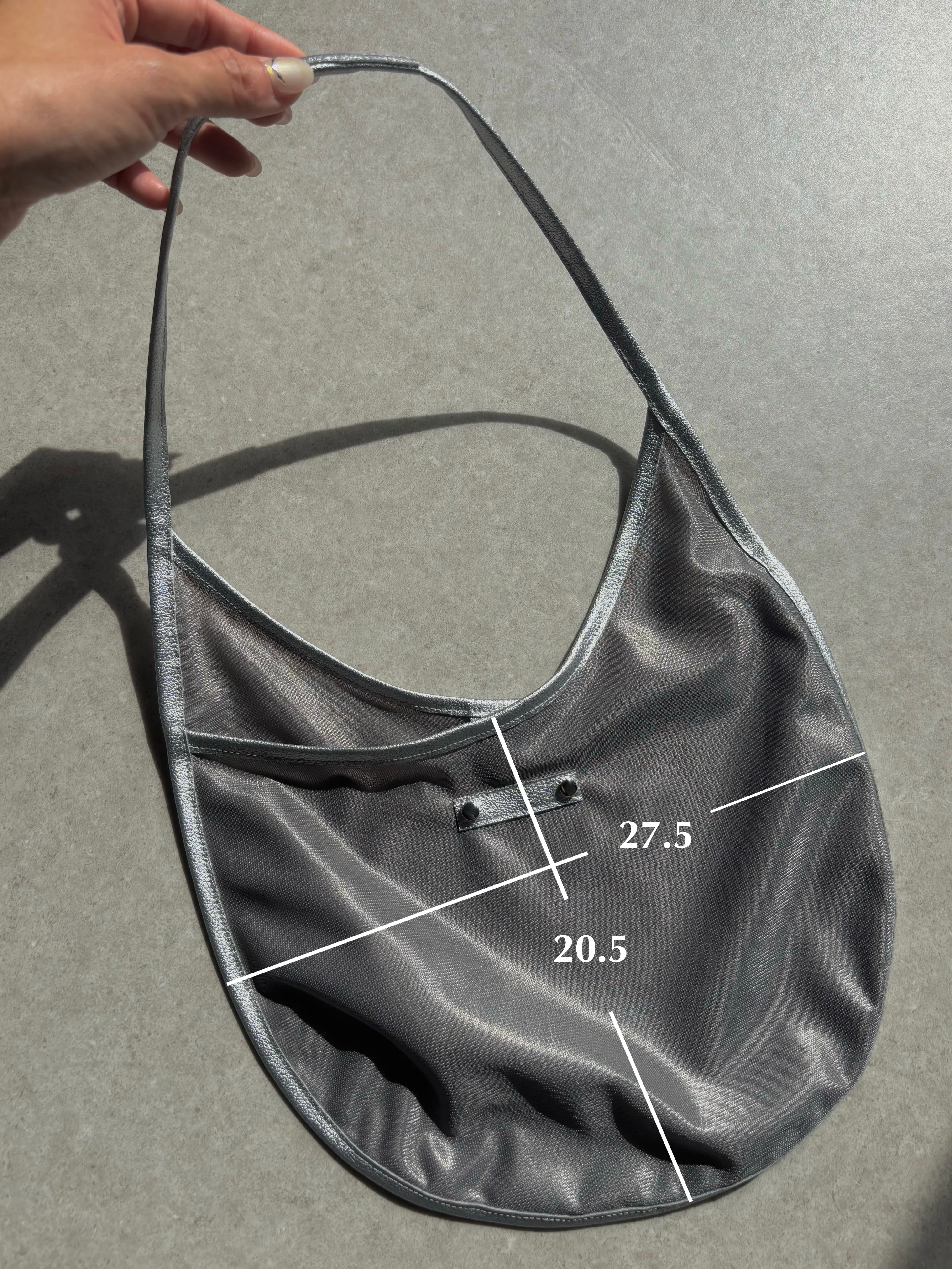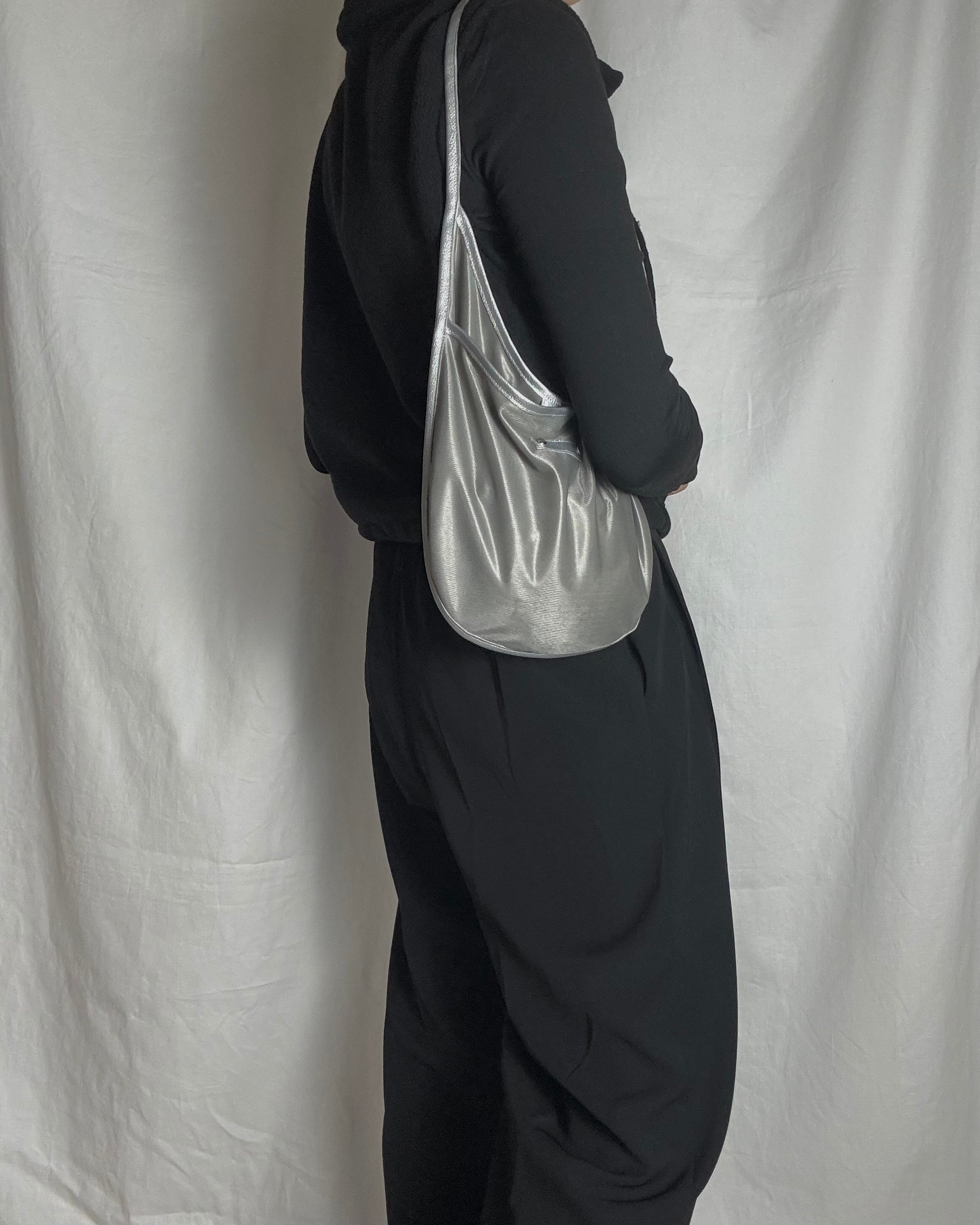 トリコット素材を使用した雫のようなラインが柔らかでエレガントなドロップバッグ。